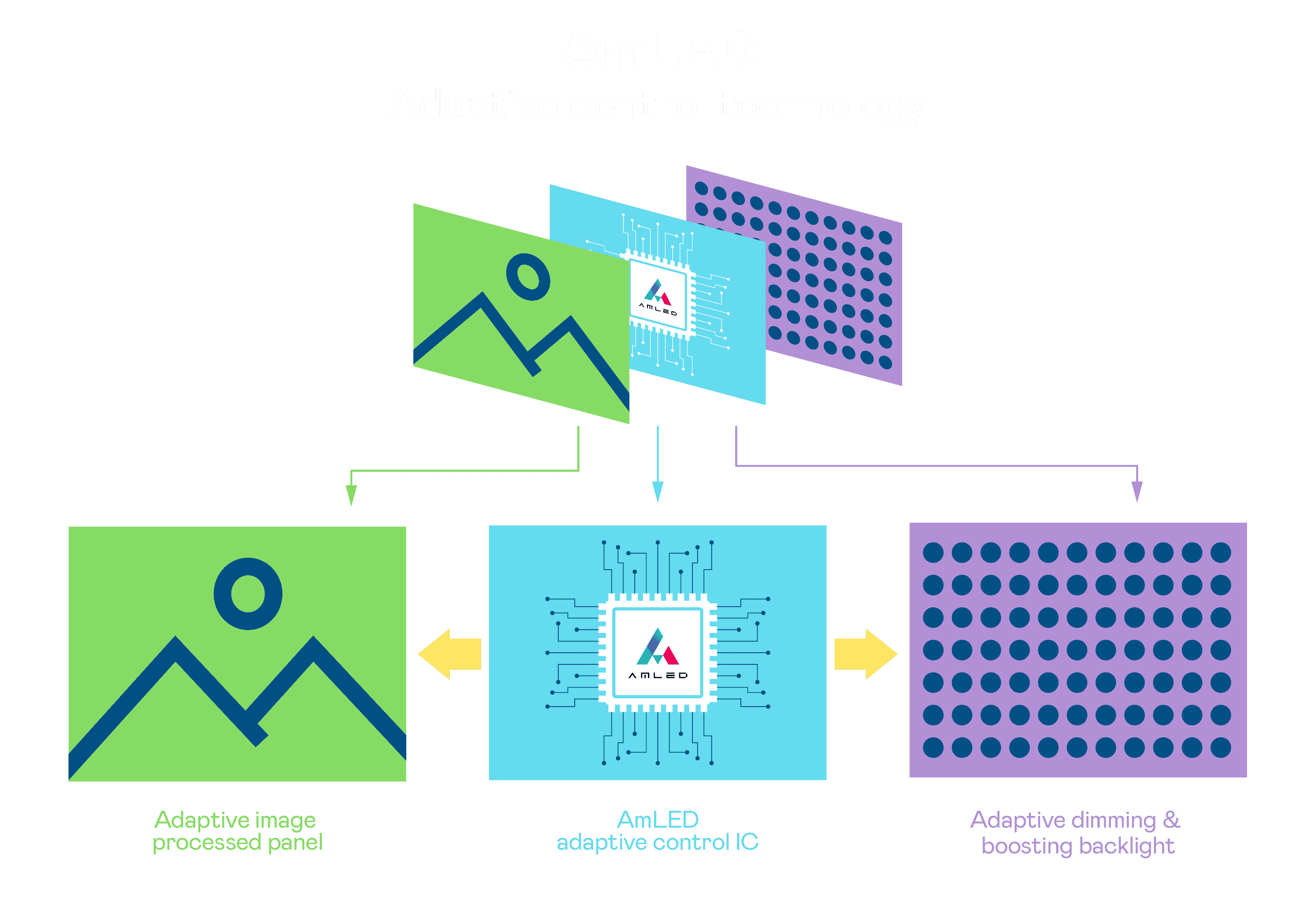 AmLED 具备更省电与低蓝光特性。。。。与一般的 LED 背光显示技术相比,,,,由于 AmLED 常时处于局部调光状态,,,,其功耗仅有前者的 50% 左右,,,,同时 AmLED 还具备低蓝光特性,,满足长时间使用的护眼需求。。